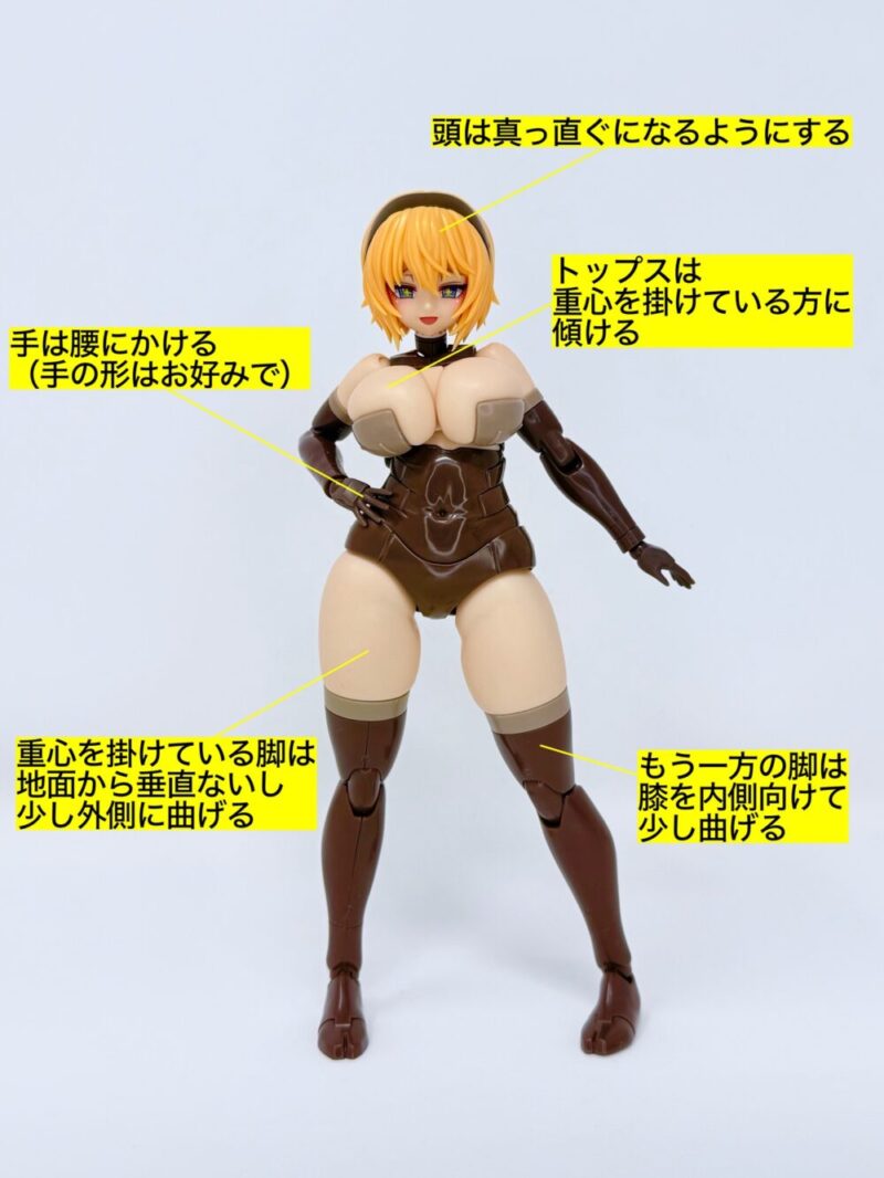 例は美少女プラモデルですが、男性やガンプラなどの人型ロボットの素立ちでもこのポイントは通用すると思います。