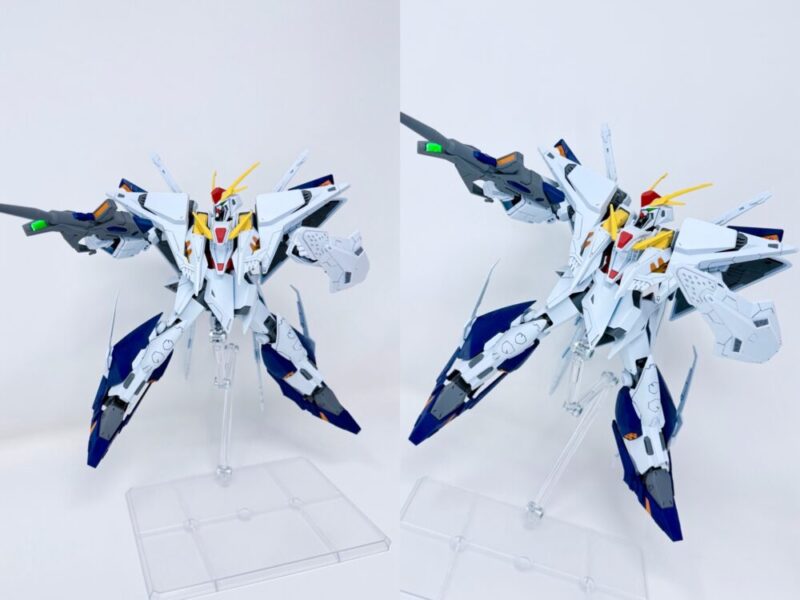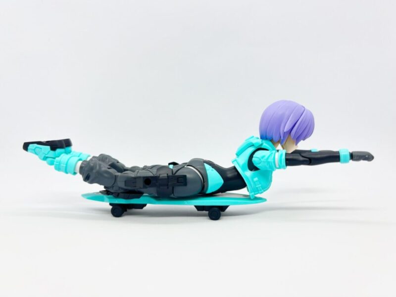 続いては後ろに振り向いた時のポーズです。自分は美少女もののプラモデルやフィギュアにおいて、後ろ姿も魅力的に見えるように撮影したいというこだわりがあり、特に振り向いた時のポーズがより魅力的に見えると思っているので、そのポージングのポイントについて解説します。