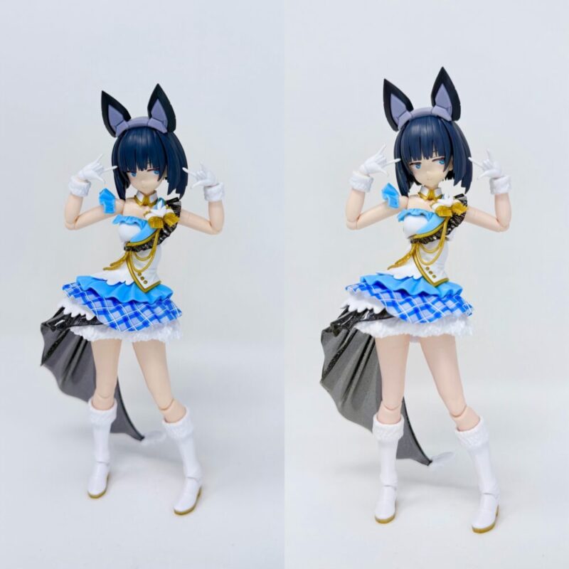 あとは美少女プラモとかフィギュアで、前述のポーズ以外ではこの「重心を片方に掛けるポーズ」や「脚をクロスさせたポーズ」でよく撮影しています。