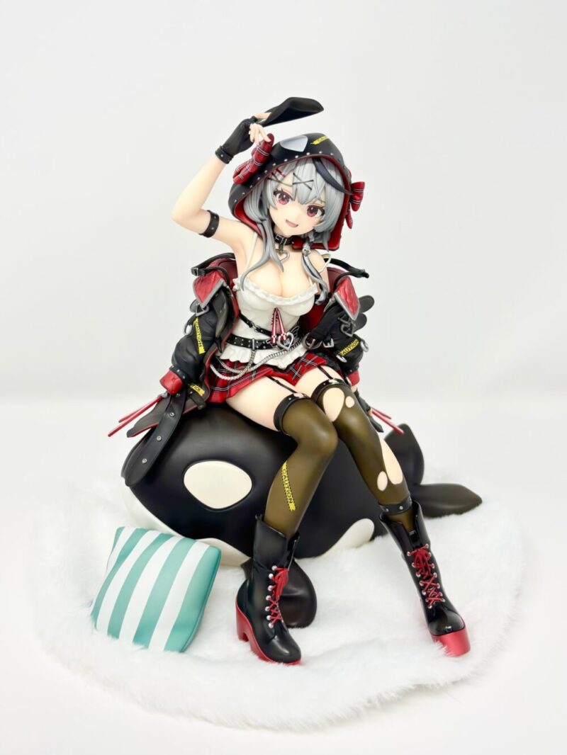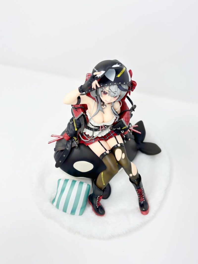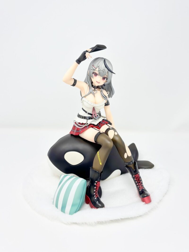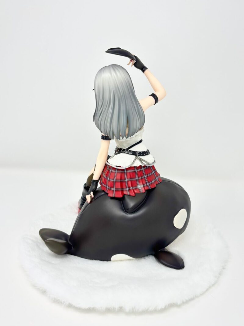 推しとか関係なく、シャチのぬいぐるみのような物に座っている姿が可愛い!スカートのチェック柄とか色の塗り分けが凄くて価格が高いのも納得のクオリティに仕上がっています。