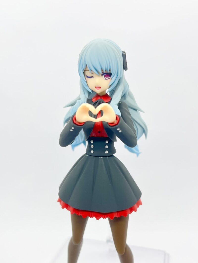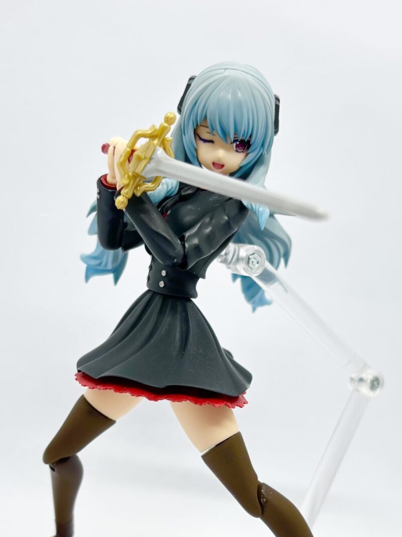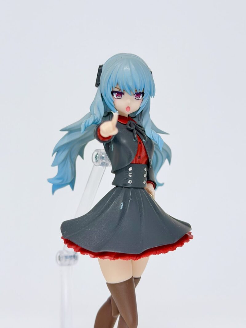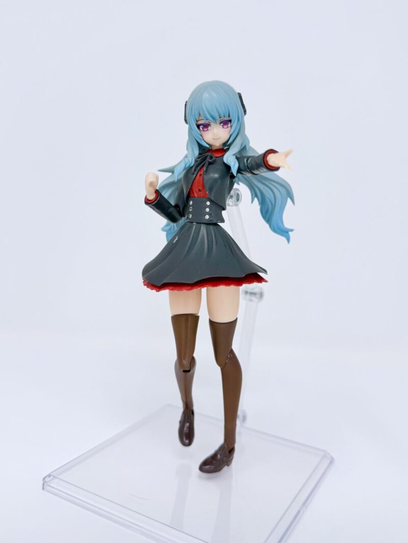 名前は「カリーナ」です。フレームアームズ・ガールのドゥルガーⅠと創彩少女庭園の佐伯リツカ(冬服)のミキシングで作成しました。髪の毛の色は雪ミクの青、制服の色はガンダムカラーのティターンズブルー1を使っています。ブルーとは言ってますが黒色ですよね…個人的には黒すぎない黒でお気に入りの色だったりします。