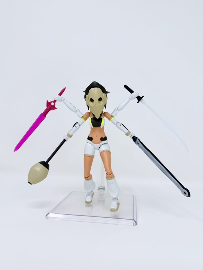 アームドモードのポージング色々。2つの武器を選択出来てプレイバリューがあり、色分けもしっかりされているので、塗装派の人にはありがたいですね…パーツも少なめなのでw
