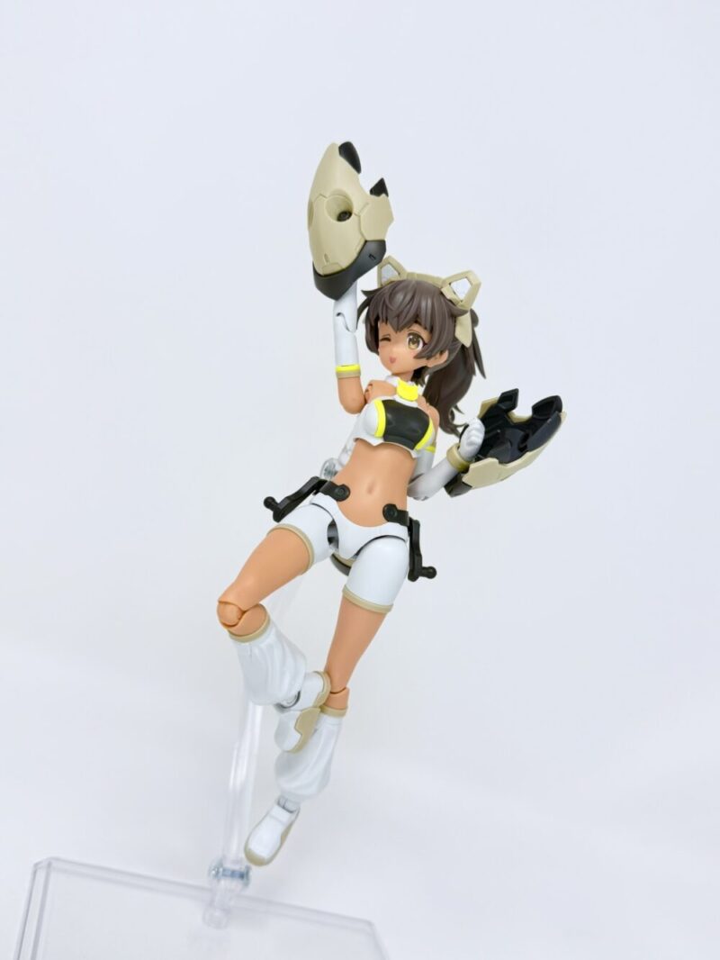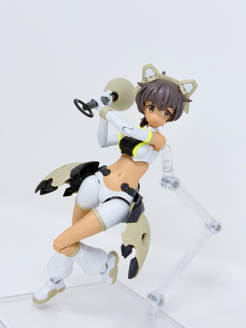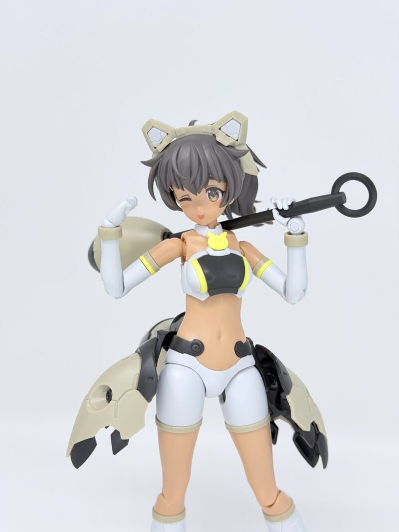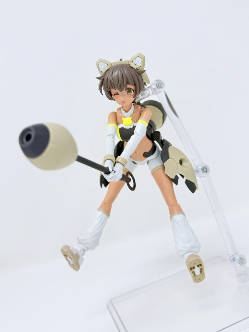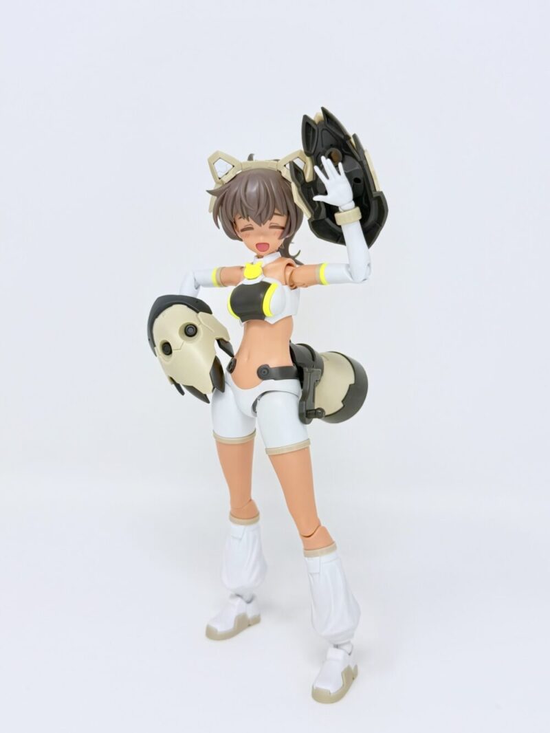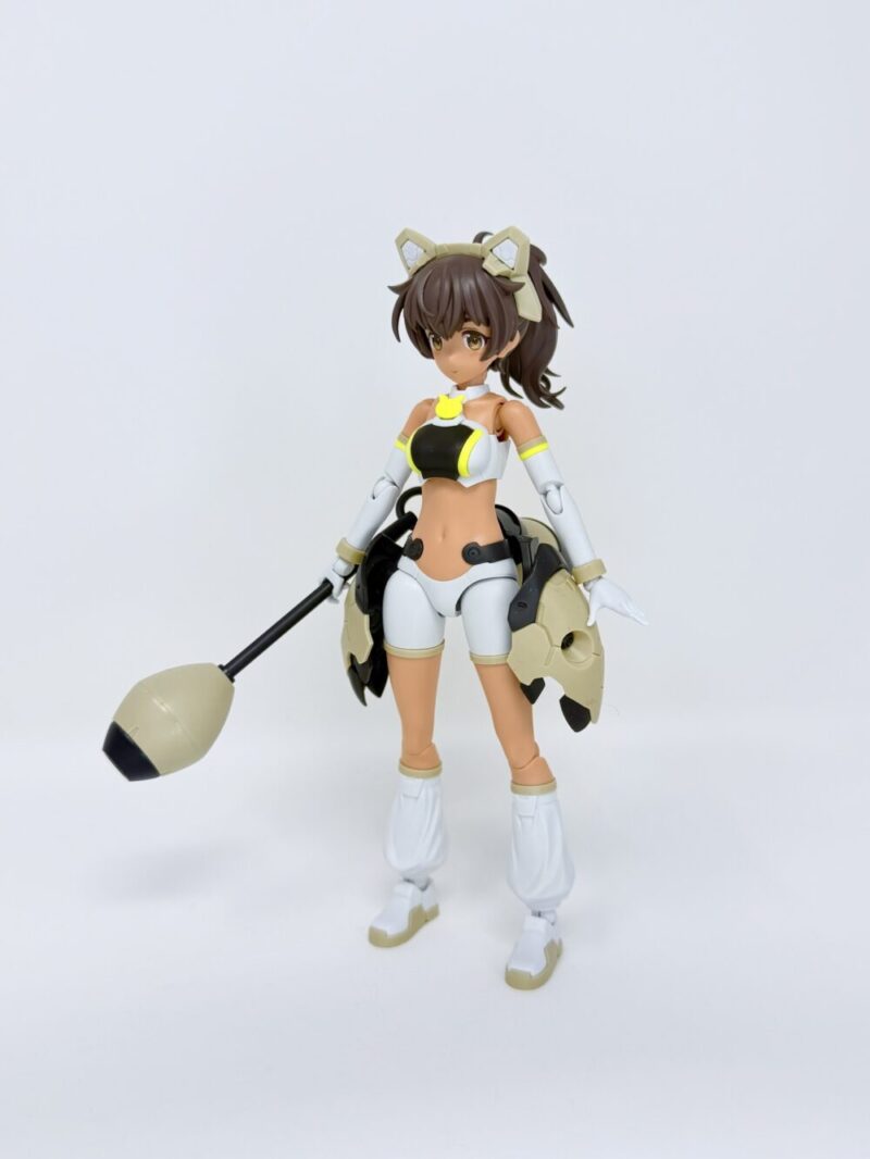 アームドモードはこんな感じ。狸モチーフの武装になっています。武器はメイスのような打撃武器になっています。比較的軽装なので、ポージングの時に武装が干渉しづらくなっています。