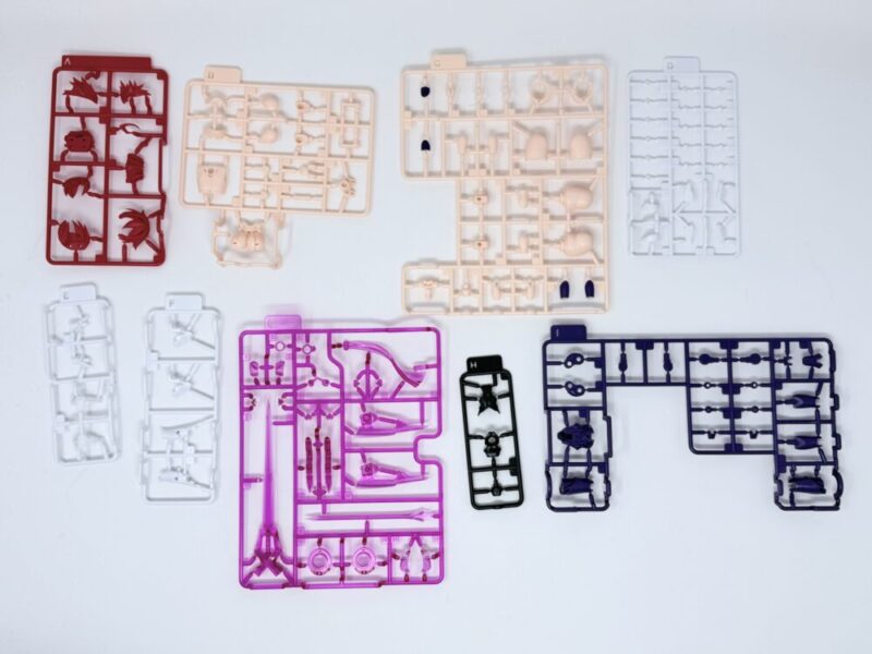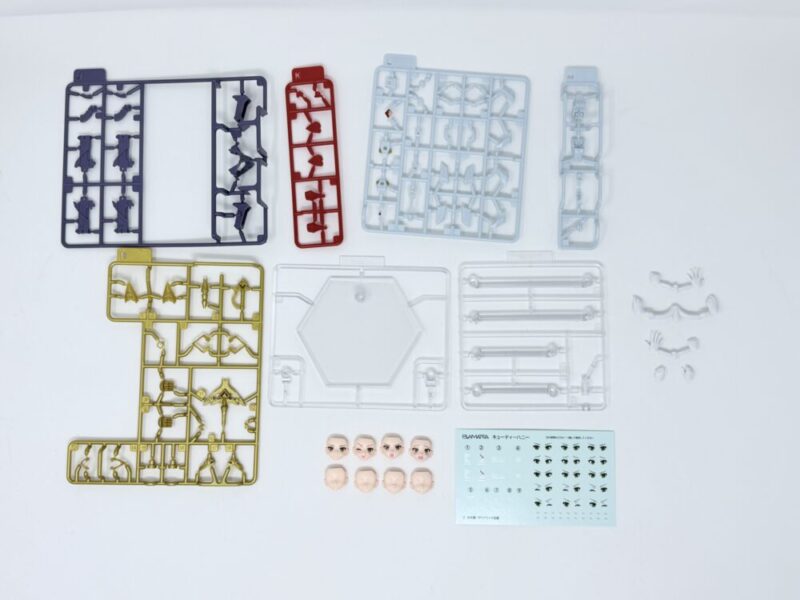 中身は、一部のパーツには塗装してあります。ランナー数もそこまで多くないです。台座スタンドとデカールが最初から付属してあります。