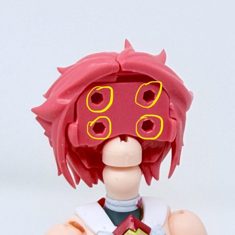 頭部のこの黄色の丸の所も、削ったりグリスを塗った方が、表情パーツをスムーズに交換する事が出来ます。