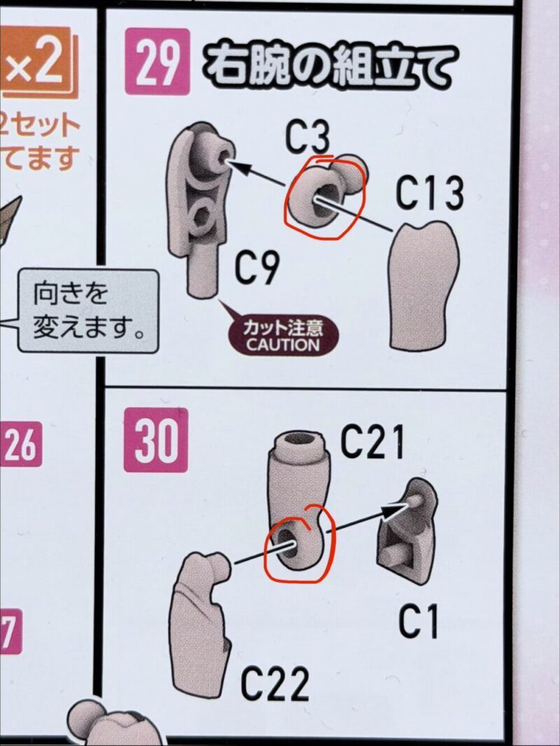 特に肘部分は、プラの厚みが薄い箇所があるので注意して下さい。